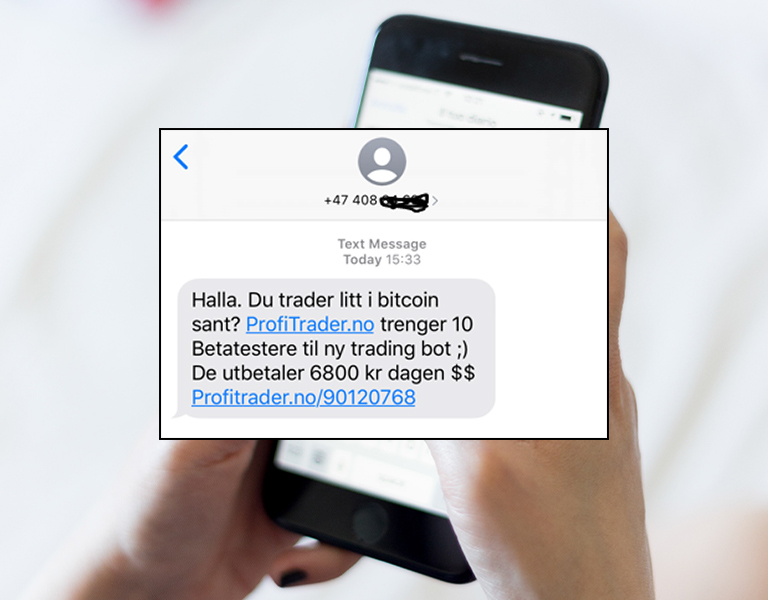 – Her spiller svindlerne på følelsen av frykt. Enkelte lar seg rive med av denne, og trykker derfor på «1». Da får de beskjed om at de vil motta en SMS, som ankommer like etter – gjerne med en lenke til den falske nettsiden, sier Busch.