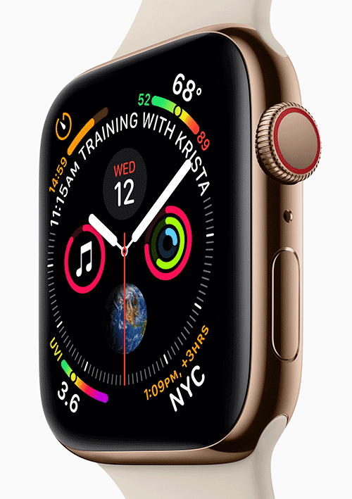 I Apple Watch series 4 tas dette til nye høyder, takket være en hel rekke nye sensorer – som til sammen kan samle inn over åtte ganger så mye sensordata enn i tidligere modeller.