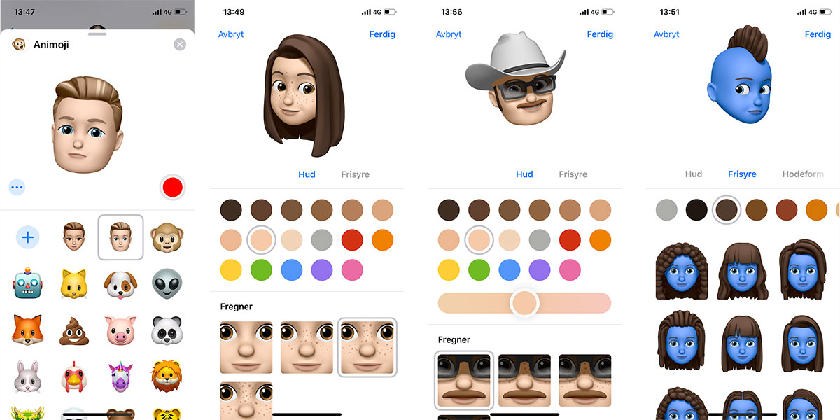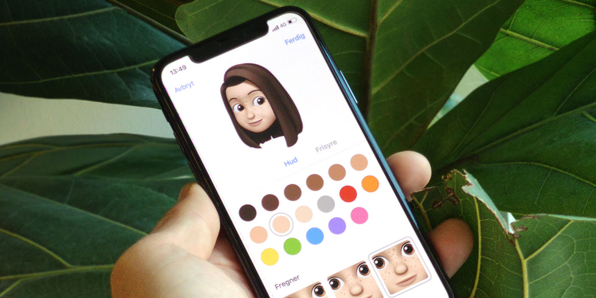 Finner du ikke noe som passer for deg blant de forhåndslagde animojiene, kan du også lage din egen – noe som selvfølgelig har fått navnet «memoji». Velg blant mange mulige farger, klær, hårstiler og så videre, og vis en helt ny side av deg selv til verden.