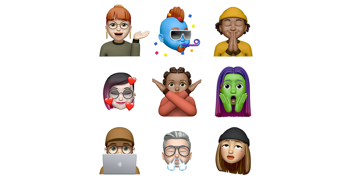 Din unike «memoji»-figur kan få mer å gjøre med ni nye klistremerker – blant annet «hjertefjes», «skjermtid», «fest» og «snøfting»: